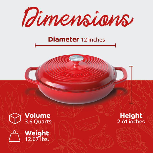 Segretto Braiser Pan | 3.6 Quarts | Red