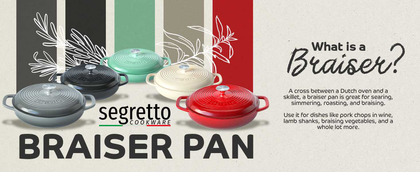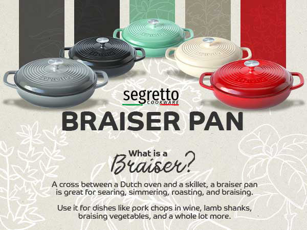Segretto CookwareIn stockA cross between a Dutch oven and a skillet, a braiser pan is great for searing, simmering, roasting, and braising. Use it for dishes like pork chop...