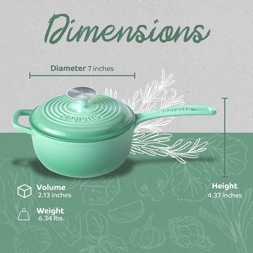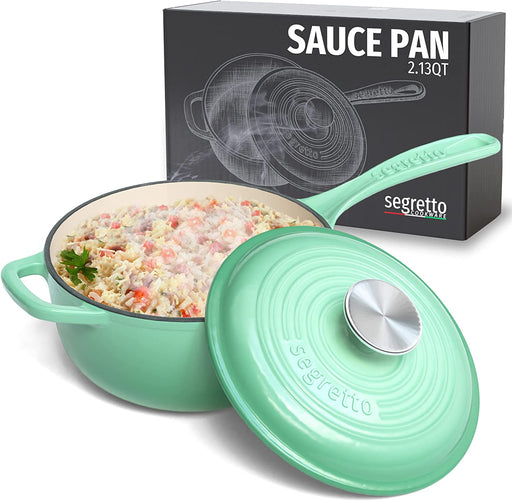 Segretto Cookware Mini Cast Iron Saucepan | 2.13 Quarts | Verde Chiaro (Gradient Green)