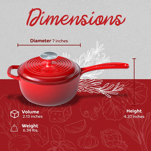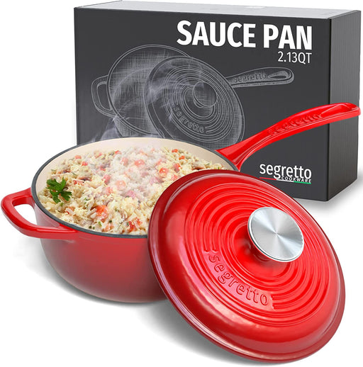 Segretto Cookware Mini Cast Iron Saucepan | 2.13 Quarts | Rosso (Red)