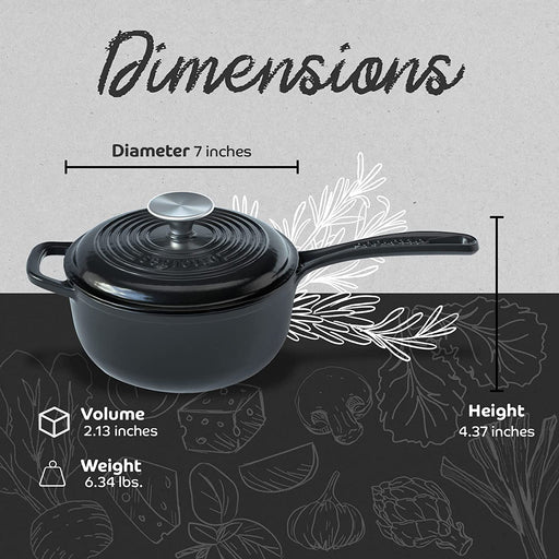 Segretto Cookware Mini Cast Iron Saucepan | 2.13 Quarts | Nero (Black)